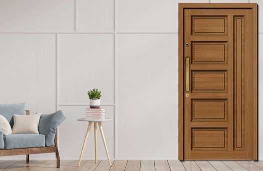 The Classical Pannelled Main Door is made with 36mm thick Solid teak wood with Interlocked Stile and Rails attached with Mullion and Designed Panels as shown in Design