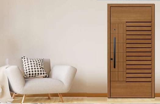 The Modern Main Dooer is made with 36mm thick Solid teak wook. The Closer these Grooves are to each other, the Stronger will be the sense of plane they convey.